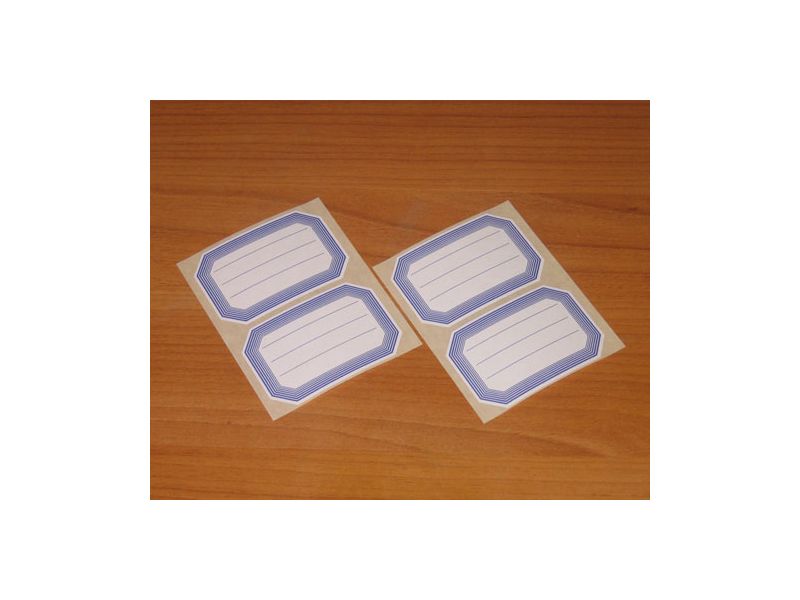 Λευκές αυτοκόλλητες ετικέτες τετραδίων, κατάλληλες για σχολική χρήση. Πακέτο 40 φύλλων / 160 ετικέτες ανά πακέτο.