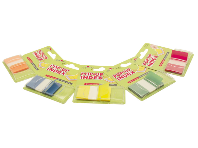 Αυτοκόλλητουι σελιδοδείκτες 44X25mm 50φύλλα pop-up σε βάση για εύκολη ανεύρεση και επισήμανση θεμάτων. Δυνατότητα γραφής στην επιφάνεια τους. Ανθεκτικοί,δεν σκίζονται. Επανακολλούνται χωρίς να καταστρέφουν τα έγγραφα. Διαθέσιμο σε 5 χρώματα: ΚΙΤΡΙΝΟ- ΠΡΑΣΙΝΟ-ΜΠΛΕ-ΚΟΚΚΙΝΟ-ΠΟΡΤΟΚΑΛΙ.