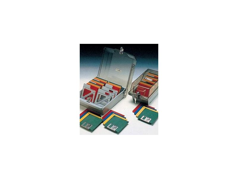 Ιδανική λύση για την αποθήκευση δισκετών 3.5'. Με μεταλλική κλειδαριά & διαφανές κάλυμμα. Προστατεύει τις δισκέτες από σκόνη και μικρομόρια. Χωρητικότητα 100 δισκέτες.