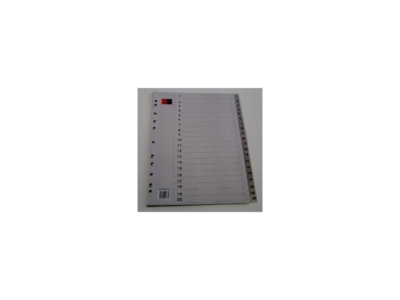 Κατασκευή από ανθεκτικό πλαστικό. Αριθμημένα θέματα από το 1-20. Με οπές για την αρχειοθέτησή τους σε ντοσιέ και κλασέρ. Ιδανικά για την αρχειοθέτηση και ταξινόμηση των εγγράφων σε 20 θέματα. Γρήγορη και εύκολη αναζήτηση του αρχείου.