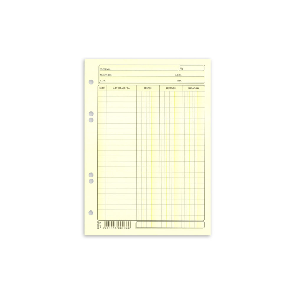 Ανταλλακτικές καρτέλες χρέωσης - πίστωσης μεγέθους Α5 με 3 στήλες & οπές αρχειθέτησης. Διάσταση καρτέλας 15x21cm. Πακέτο 100 τεμαχίων. **Υπάρχει ελάχιστη συσκευασία για το προϊόν.