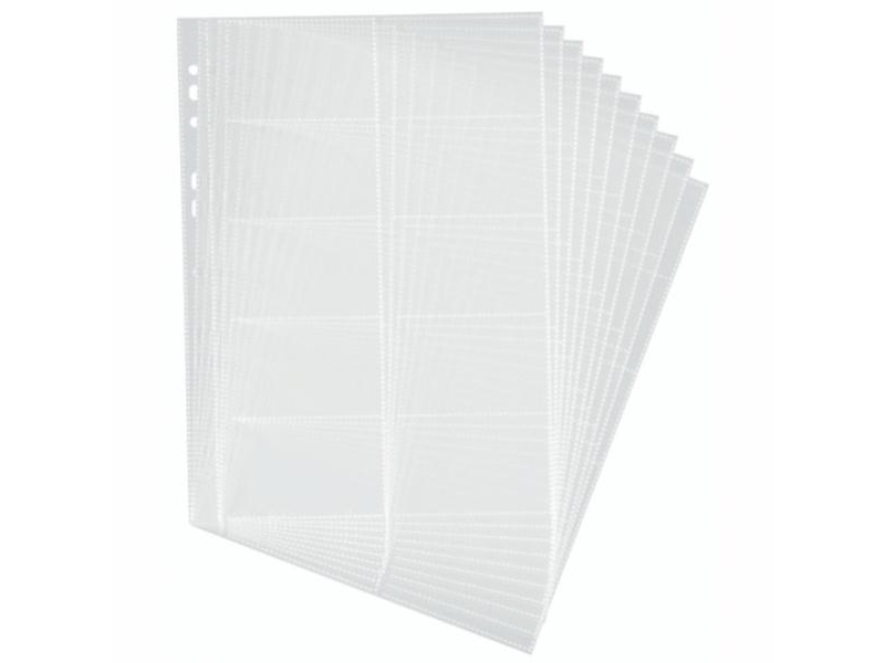 Ανταλλακτικές θήκες μεγέθους Α4 με οπές αρχειοθέτησης για φύλαξη επαγγελματικών καρτών. Κατάλληλες για ντοσιέ καρτ βιζίτ με 2 ή 4 κρίκους. Χωρητικότητα 20 καρτών επισκεπτηρίου μπρος-πίσω σε κάθε φύλλο διαστάσεων 55x90mm. **Υπάρχει ελάχιστη συσκευασία αγοράς για το προϊόν.