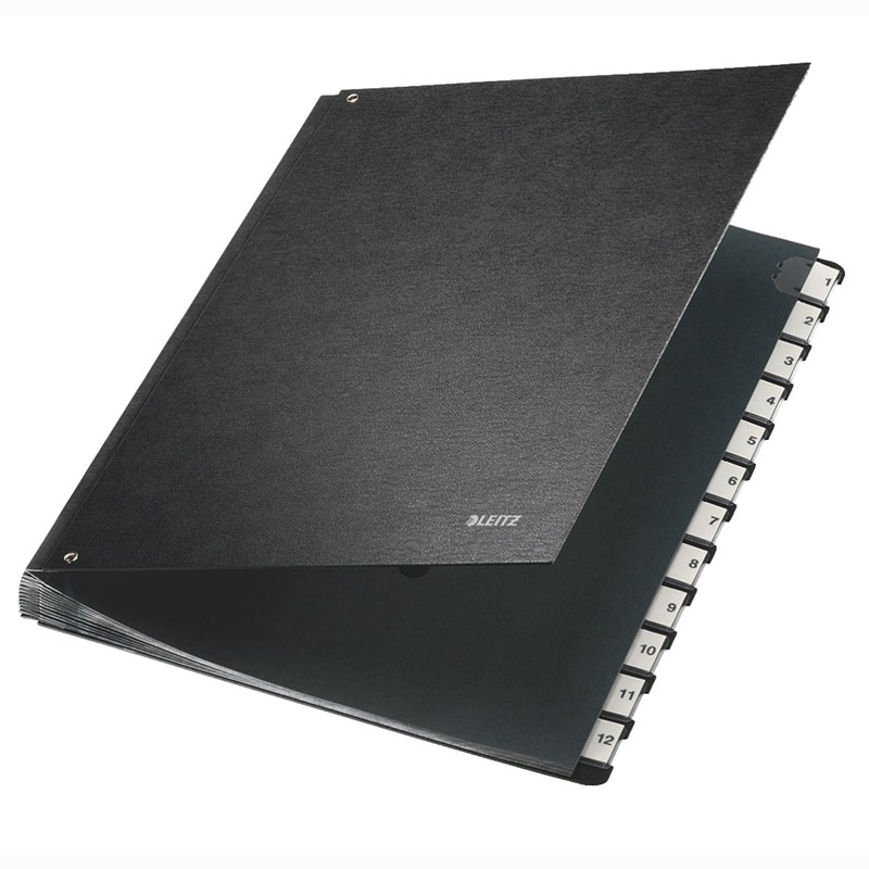 Ντοσιέ με εγκοπές και οδηγούς ταξινόμησης εγγράφων. Εξώφυλλο από σκληρό χαρτόνι με επένδυση από ανθεκτικό πλαστικό. Τέλεια ποιότητα LΕΙΤΖ.