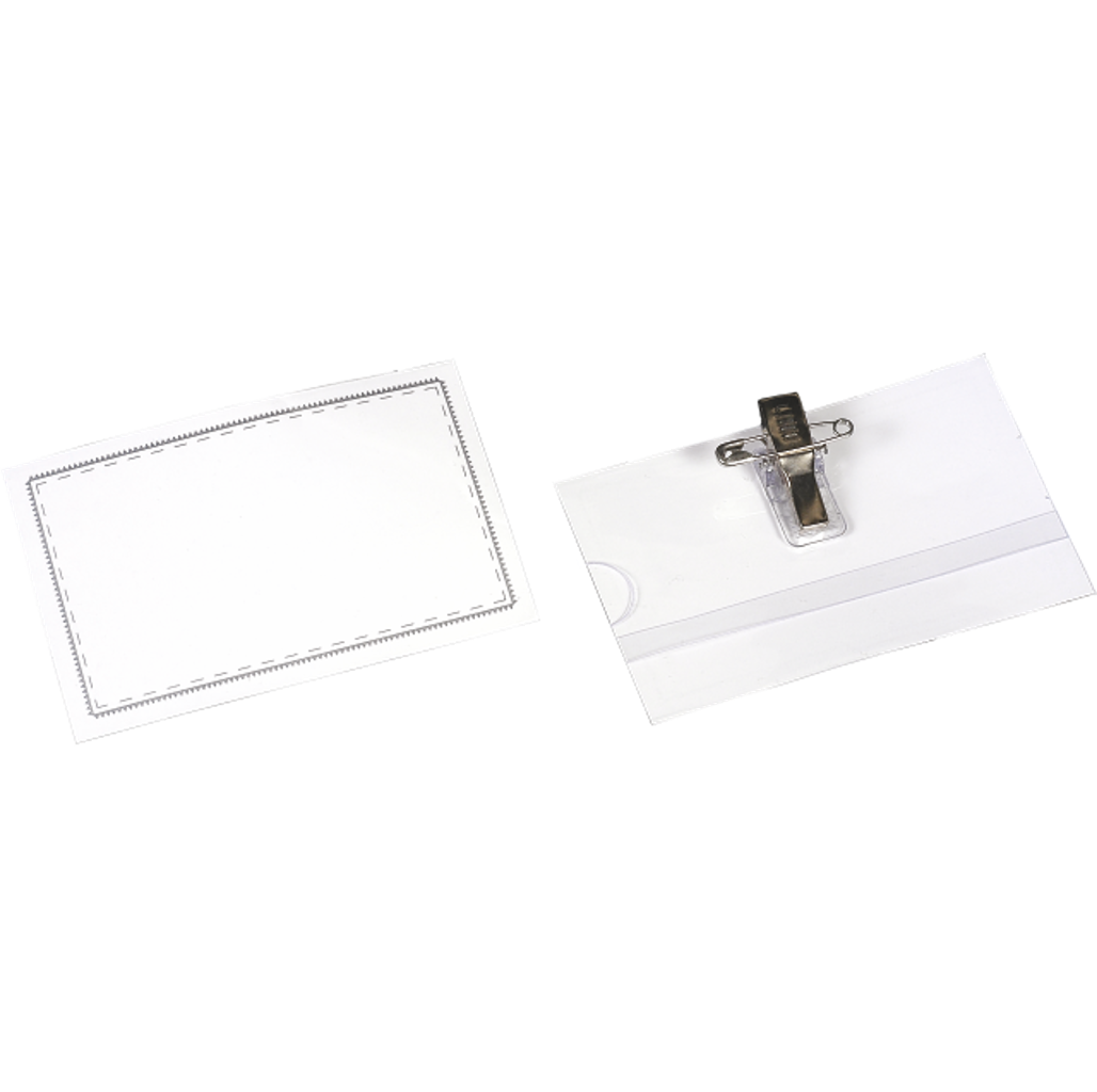 Ιδανική για συνέδρια,σεμινάρια,παρουσιάσεις. Για την αναγραφή και εύκολη αναγνώριση ονομάτων σε εκδηλώσεις. Πλαστική θήκη με ετικέτα που αφαιρείται και επανατοποθετείται εύκολα. Με παραμάνα και κλιπ στην πίσω πλευρά. Διάσταση 5.4X9cm. Συσκευασία 50τεμ.