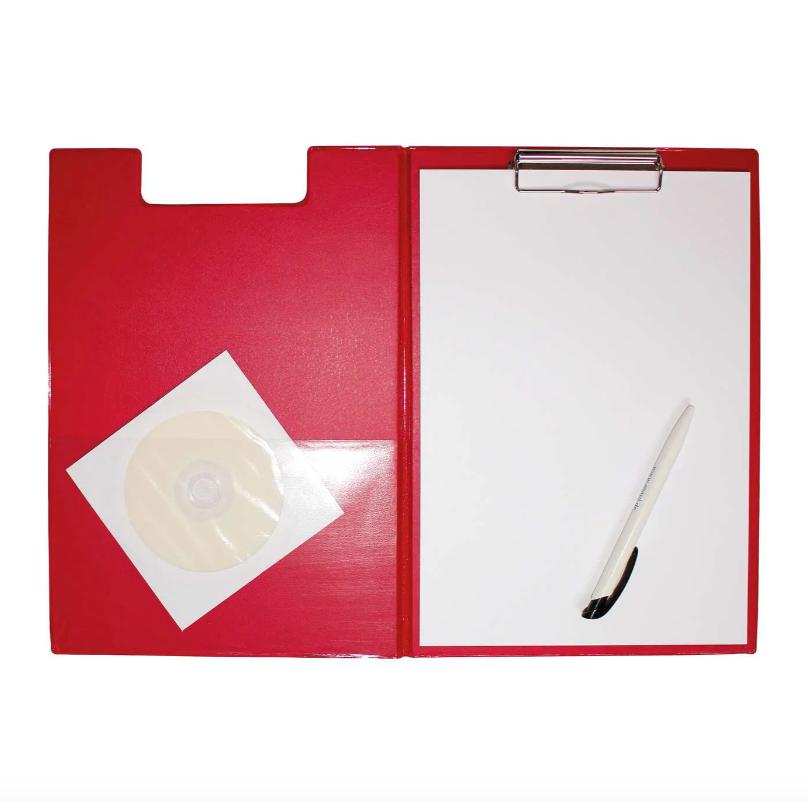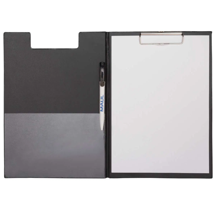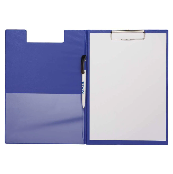 Επενδεδυμένο με πλαστικό κάλυμμα καλής ποιότητας. Διαθέτει πιάστρα ασφαλείας στο επάνω μέρος για τοποθέτηση μπλοκ και χαρτιών μεγέθους Α4 και επιπλέον θήκη για στυλό. Εσωτερική θήκη στην αριστερή πλευρά του ντοσιέ για τοποθέτηση εγγράφων ή καρτών. Διαθέσιμο σε 3 χρώματα: ΜΠΛΕ – ΜΑΥΡΟ - ΚΟΚΚΙΝΟ