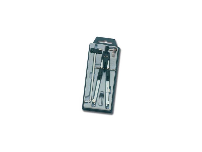 Εξ ολοκλήρου μεταλλικός. Με προέκταση για μεγάλους κύκλους. Σπαστός και στα δύο σκέλη. Με βίδα για ακρίβεια στο σχέδιο. Δέχεται ειδικό δακτύλιο για χρήση με ραπιδογράφο. Τα δύο σκέλη του ανοίγουν εύκολα, πιέζοντας ελαφρά τις δύο υποδοχές που είναι τοποθετημένες πάνω σε αυτά.