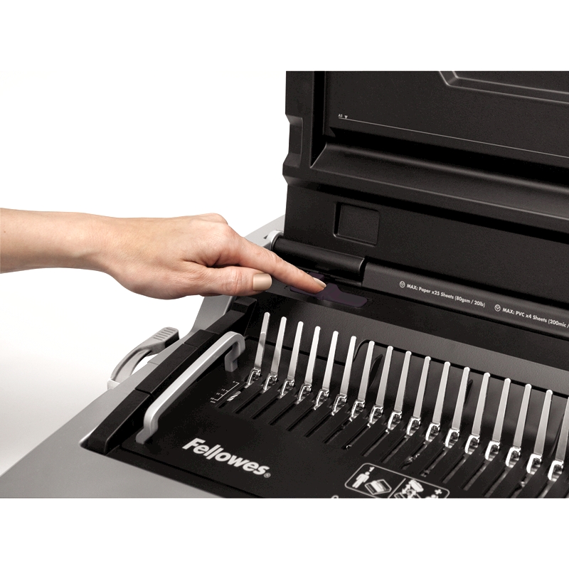 Σχεδιασμένο μηχάνημα βιβλιοδεσίας σπιράλ για μεγάλου όγκου βιβλιοδεσίες εγγράφων για χρήση στο γραφείο. Η διάτρηση των εγγράφων γίνεται ηλεκτρικά με το πάτημα ενός κουμπιού, γεγονός που κάνει την διαδικασία της βιβλιοδεσίας ευκολότερη και απλούστερη.Ρύθμιση δύο βαθών τρυπήματος. Σύστημα μετακινούμενης πλατφόρμας που επιτρέπει την ταυτόχρονη διάτρηση και βιβλιοδεσία εγγράφων από πολλούς χρήστες , για μεγαλύτερη εξοικονόμηση χρόνου στον χώρο εργασίας.