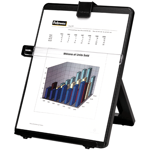 Για φύλλα μεγέθους Α4. Με πήχυ συγκράτησης για ακόμη μεγαλύτερη ποσότητα φύλλων. Πολλαπλής ρύθμισης με γωνία κλίσης.