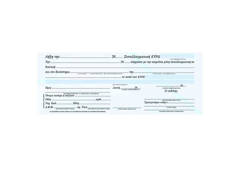 Μπλοκ συναλλαγνατικών 50φύλλων.Διάσταση 21Χ9,6cm.