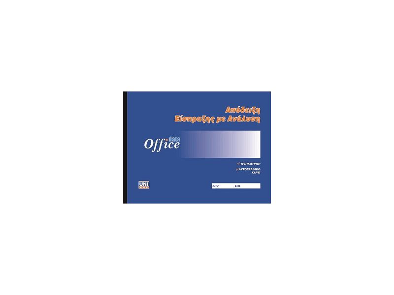Απόδειξη είσπραξης.Δεν χρειάζεται καρμπόν.Με ειδικό χώρο για αναγραφή μετρητών και επιταγών.Τριπλότυπη.Διάσταση 13Χ19cm.
