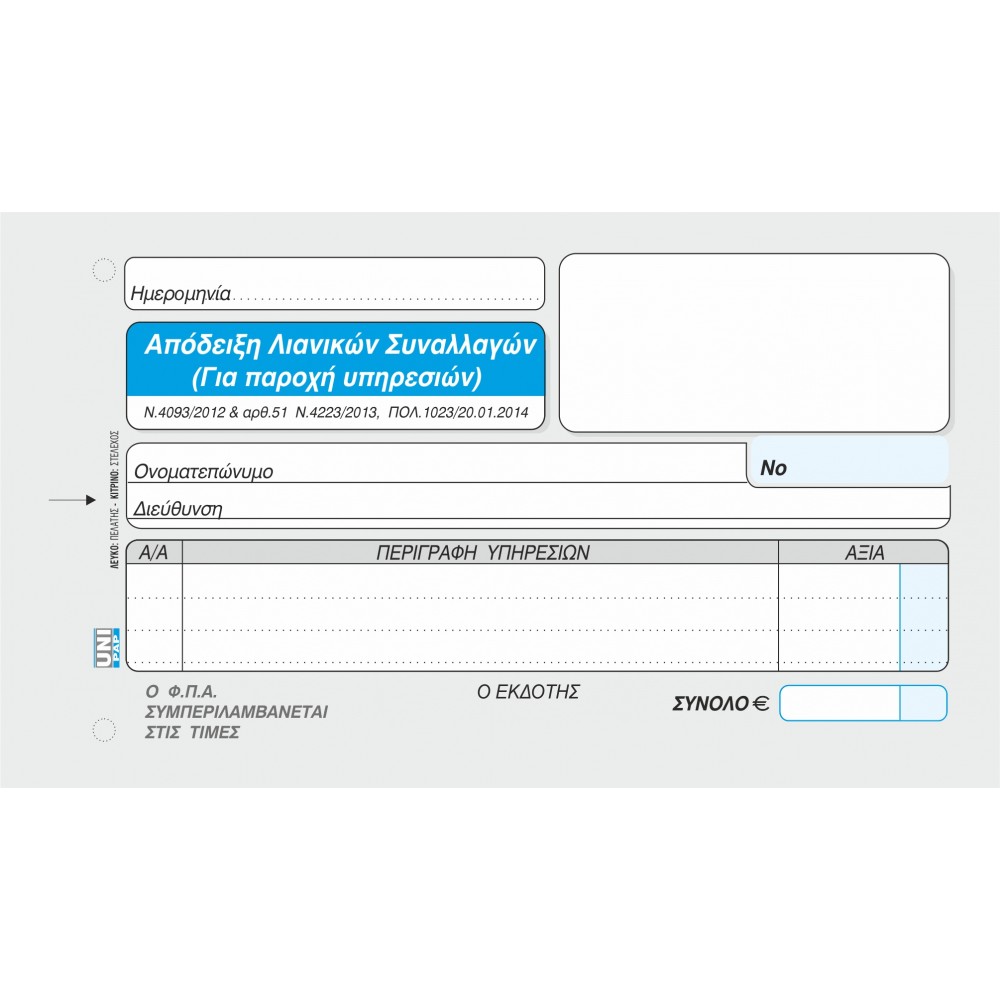 ΑΠΟΔΕΙΞΗ ΛΙΑΝΙΚΩΝ ΣΥΝΑΛΛΑΓΩΝ ΓΙΑ ΠΑΡΟΧΗ ΥΠΗΡΕΣΙΩΝ ΜΕ ΦΠΑ