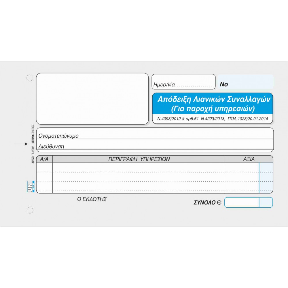 ΑΠΟΔΕΙΞΗ ΛΙΑΝΙΚΩΝ ΣΥΝΑΛΛΑΓΩΝ ΓΙΑ ΠΑΡΟΧΗ ΥΠΗΡΕΣΙΩΝ ΧΩΡΙΣ ΦΠΑ