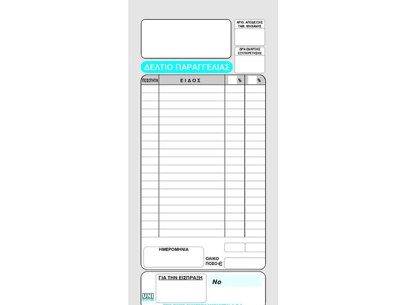 Δελτίο παραγγελίας εστιατορίου. Δεν χρειάζεται καρμπόν.Διαθέσιμο σε 2 διαστάσεις : 9Χ20cm & 8Χ17cm.