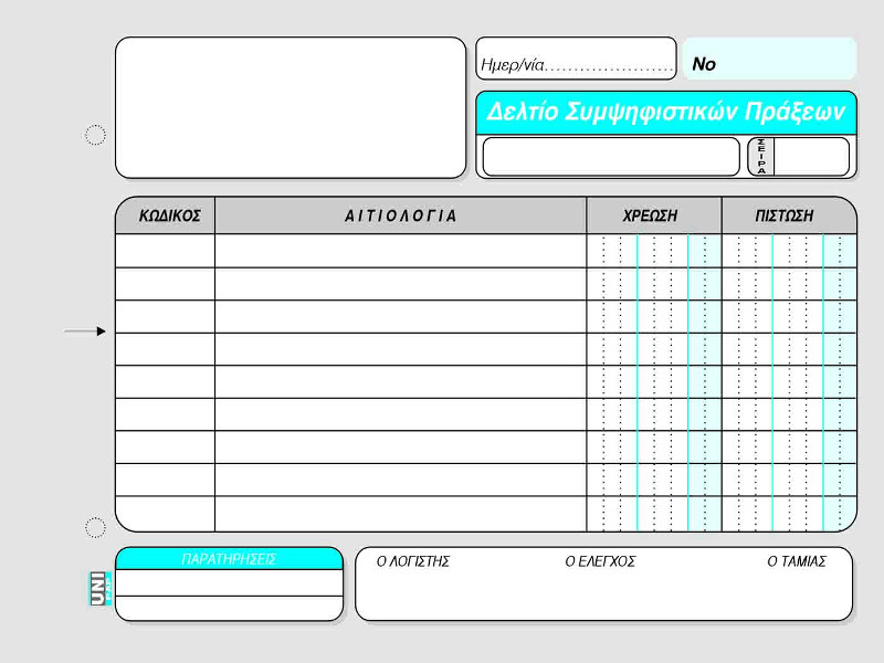Δελτίο συμψηφιστικών πράξεων. Δεν χρειάζεται καρμπόν. Τριπλότυπο. Διάσταση 13Χ19cm.