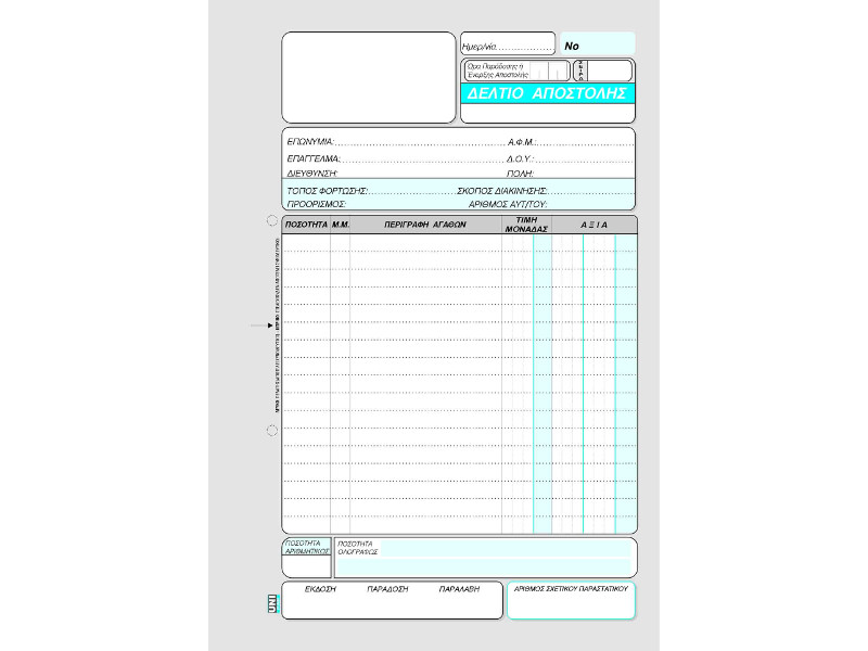 Δελτίο αποστολής. Δεν χρειάζεται καρμπόν.Διάσταση 17Χ25cm.