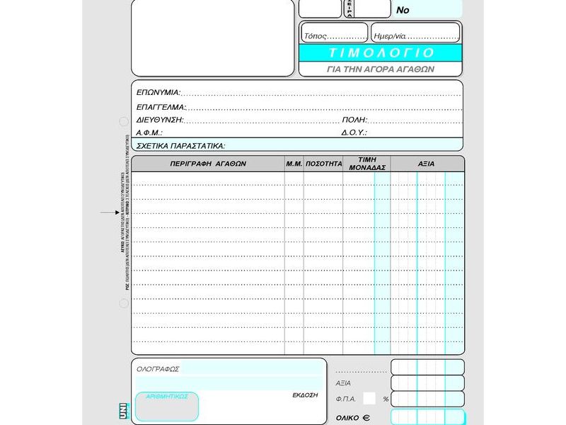 Τιμολόγιο Αγοράς. Δεν χρειάζεται καρμπόν.Τριπλότυπο.Διάσταση 19Χ20cm.