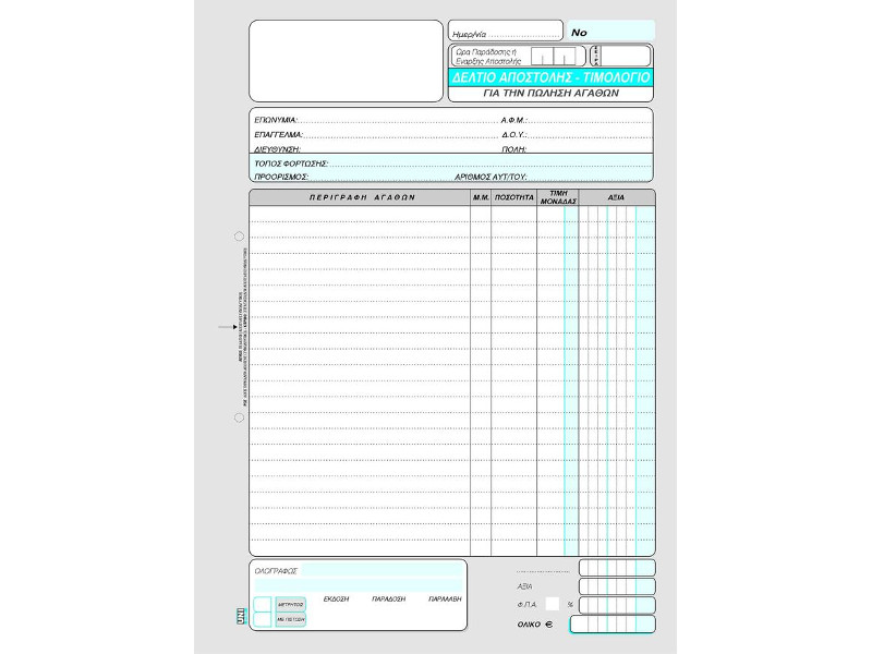Δελτίο αποστολής - Τιμολόγιο Πώλησης Αγαθών. Δεν χρειάζεται καρμπόν.Διάσταση 17Χ25cm.