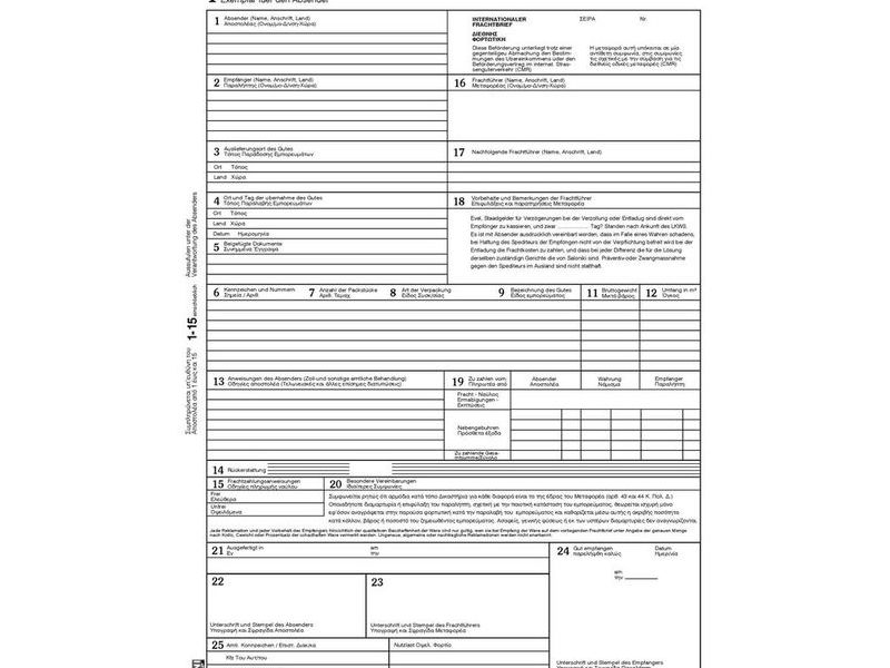 Φορτωτική διεθνών μεταφορών. Δεν χρειάζεται καρμπόν. Εξαπλότυπο.Διάσταση 21Χ29cm.
