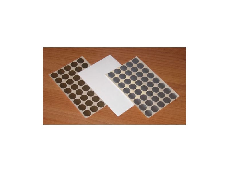 Ετικέτες αυτοκόλλητες στρογγυλές διαμέτρου 19mm σε φύλλα. Κατάλληλες για φακέλους προσκλήσεων, προσκλητήρια γάμου - βαπτίσεων κλπ. Πακέτο 40 φύλλων / 1600 ετικέτες ανά πακέτο. Διαθέσιμο σε 2 χρώματα : ΧΡΥΣΟ - ΑΣΗΜΙ.