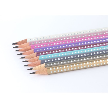 Μολύβια Sparkle σε μοναδικά χρώματα που αιχμαλωτίζουν κάθε χρώμα με τις απαστράπτουσες λεπτομέρειες κατά μήκος του ιριδίζοντος κορμού και στο πίσω μέρος. Ο κορμός είναι χρωματισμένος με ιριδίζον χρώμα. Εργονομικό τριγωνικό σχήμα για πιο άνετη γραφή. Με ανθεκτική μύτη στα σπασίματα, χάρη στην επεξεργασία SV. Προϊόν κλιματικά ουδέτερης παραγωγής. Βαθμός σκληρότητας: Β. Διαθέσιμο σε 9 διαφορετικά χρώματα: Λιλά - Τιρκουάζ - Ροζ - Ροζέ shadow - Ανθρακί - Coconut - Κόκκινο - Πράσινο - Χρυσό.