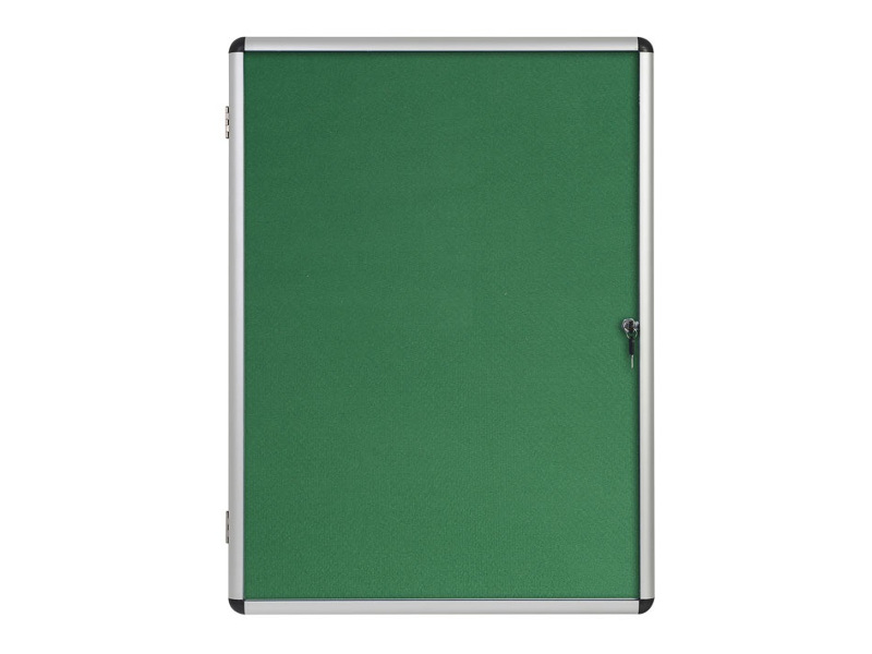 Πίνακας τσόχας ενσωματωμένος σε βιτρίνα με τζάμι και κλειδαριά ασφαλείας. Με πλαίσιο αλουμινίου, διακοσμητικές γωνίες και άγκιστρα για την ανάρτησή του στον τοίχο. Εξαιρετικά ανθεκτικός φελλός πάχους 5mm με επένδυση από ύφασμα τσόχας, τοποθετημένος επάνω σε σκληρή ξύλινη επιφάνεια πάχους 10mm για να μην καταστρέφεται από τα τρυπήματα. Κατάλληλος για την ασφαλή ανάρτηση μηνυμάτων, σημειώσεων, ανακοινώσεων κλπ με πινέζες ή καρφίτσες. Διαστάσεις βιτρίνας 60Χ80cm.